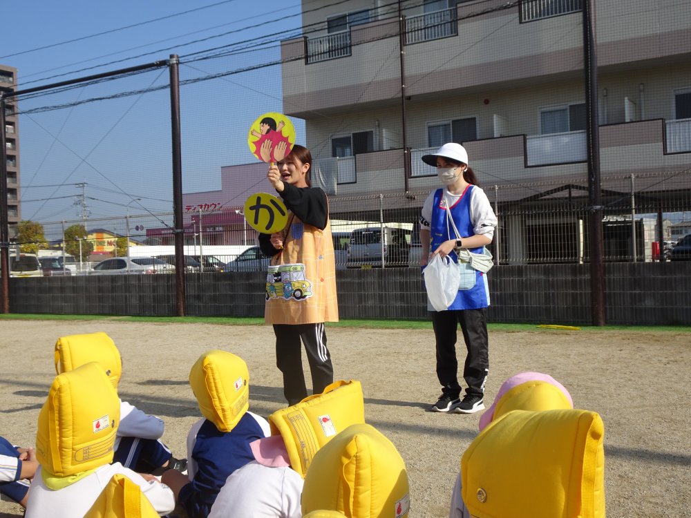見つけたら近くにいる大人たちに知らせたり、素早く集まることが出来るようになどのお話を聞くことが出来ました。