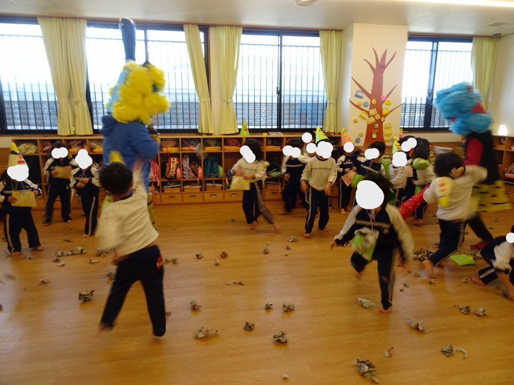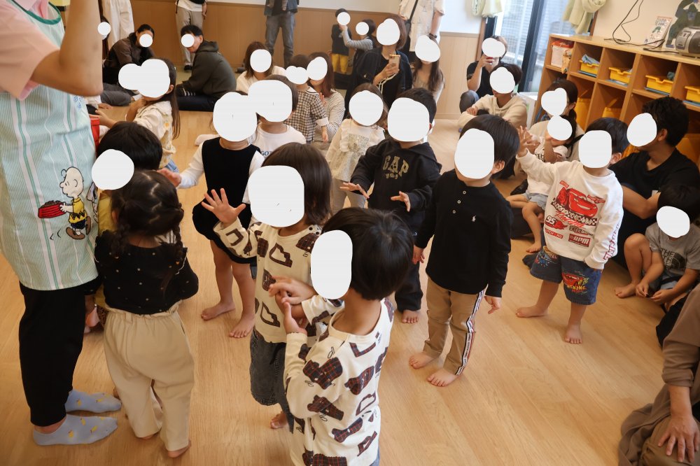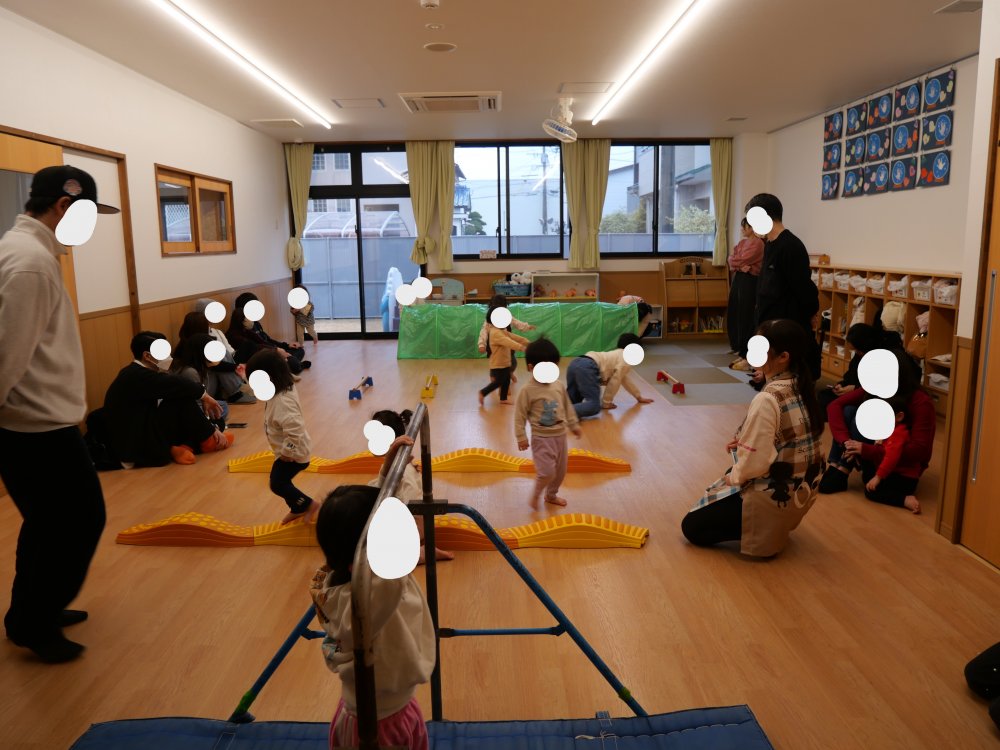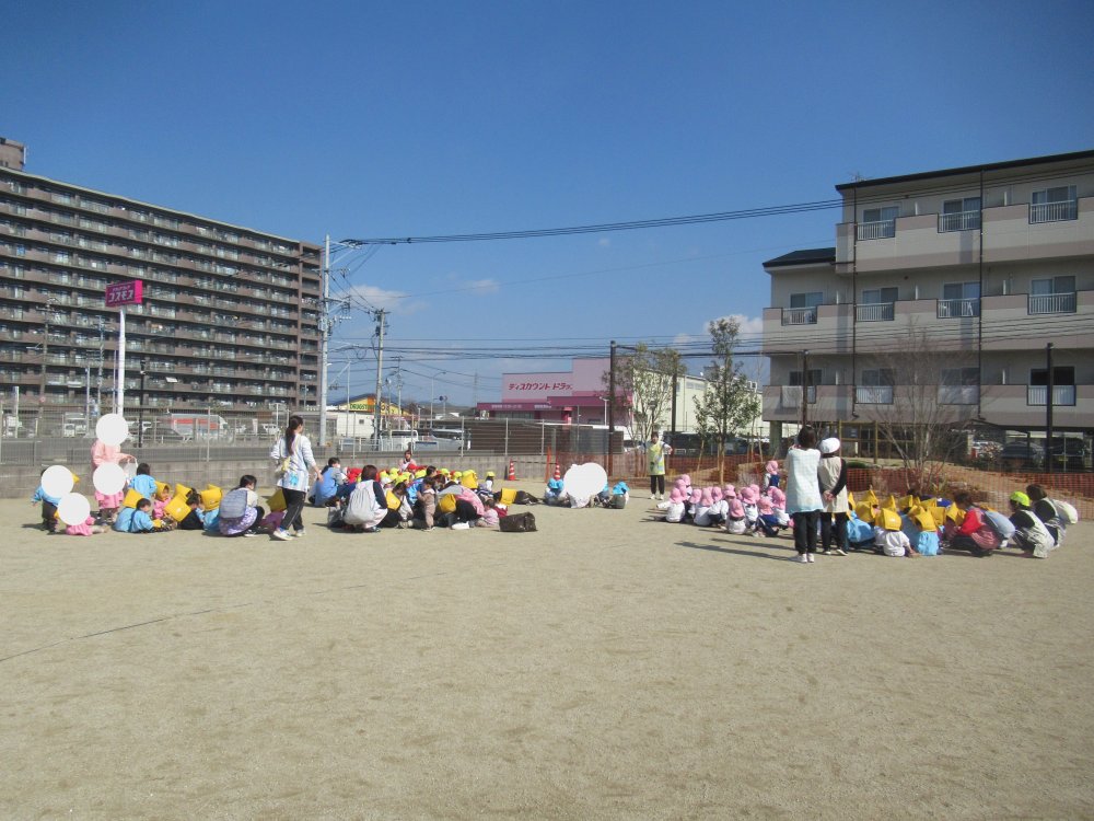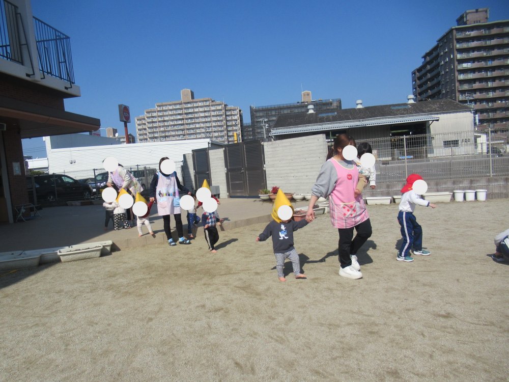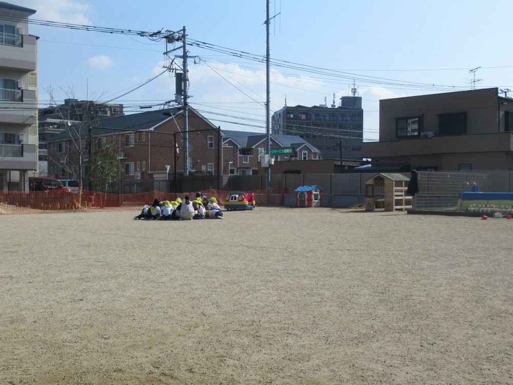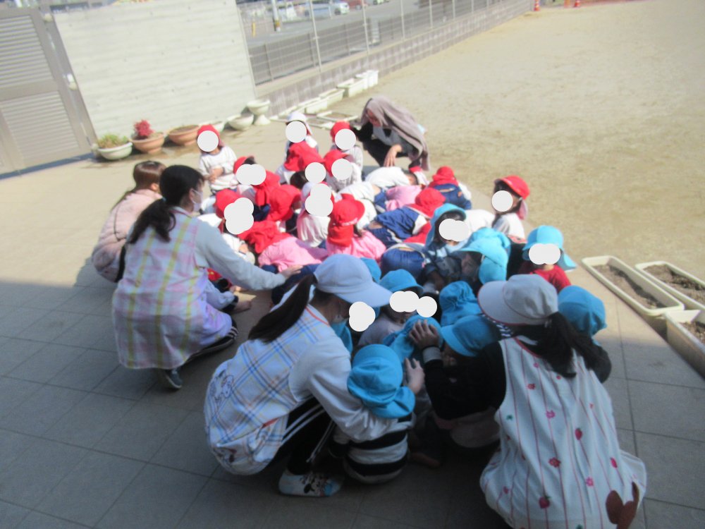 園庭で外遊びをしているクラス、園庭から帰る途中だったクラスもいました。