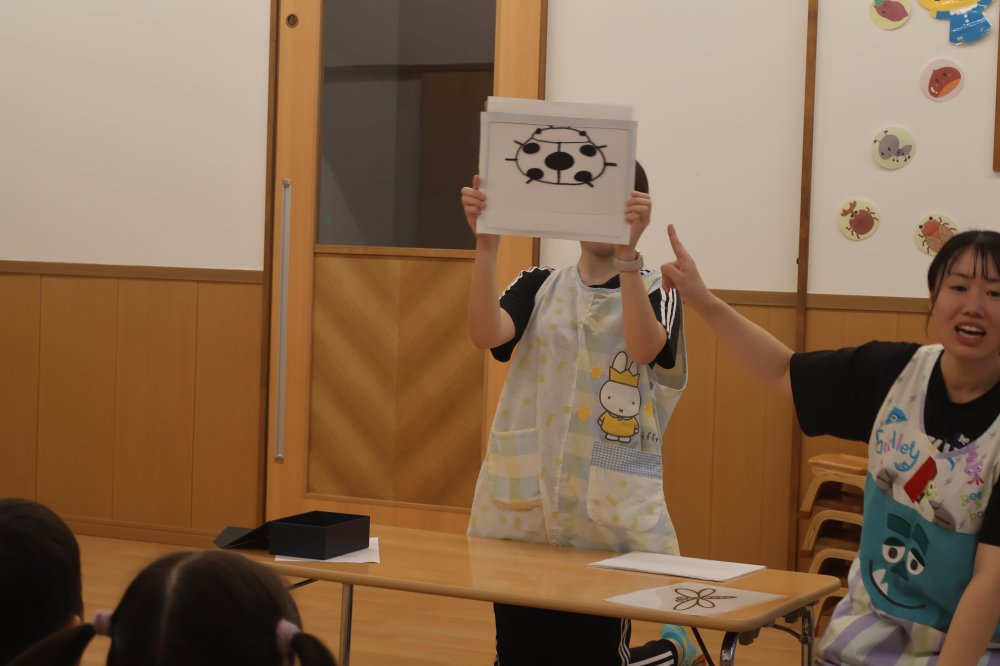 虫のイラストが出てきて驚いた表情の子どもたちでした。
