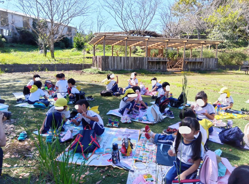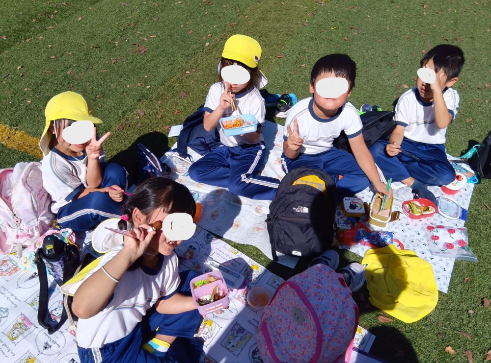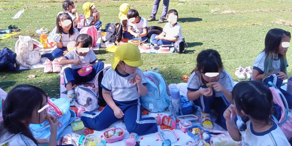 芋ほりの畑から坂を上った広場でお弁当を食べました!