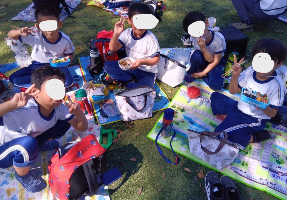 シートも自分で広げて嬉しそうにお弁当を開け、「これ入ってるよ!」「先生見て!」と